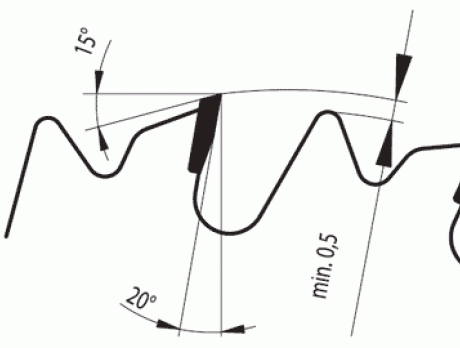 - saw blade geometry includes a chip thickness limiter