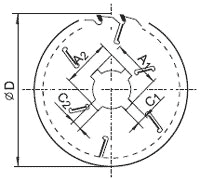 | D | S | s | d | z | hmax | dp max | Bore | C1xA1 | C2xA2 |
