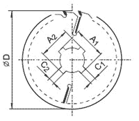 | D | S | s | d | z | hmax | dp max | Bore | C1xA1 | C2xA2 |